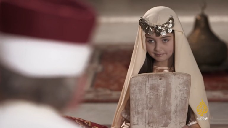 ففي 3 دقائق يعرض الفيلم مسيرة عزيزة عثمانة بشكل برقي، فيذكر طارق حسين نشأتها في دار عثمان داي وتعلمها هناك وزواجها، ثم تذكر ليلى تميم البليكي هوية هذا الزوج، ويذكر محمد العزيزي صلتها بحكم عثمان داي، ثم استقرار أمر الحكم للمراديين في عهد حمودة باشا.