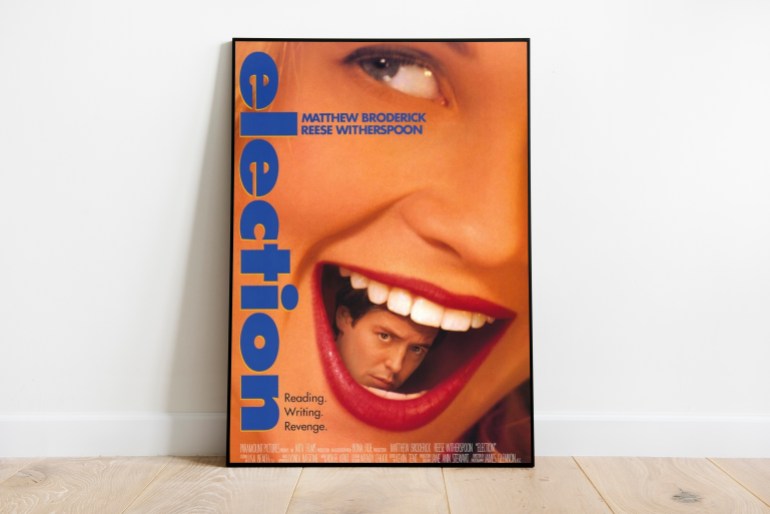 يصنّف فيلم “انتخاب” (Election) في فئة الدراما الكوميدية الساخرة، وتستند أحداثه إلى رواية كتبها توم بيروتا، ليروي قصة معلم يدعى جيم ماكاليستر (ماثيو برودريك) يدخل في صراع مع طالبة طموحة تدعى تريسي فليك (ريسي ويذرسبون) خلال حملة انتخابات طلابية.