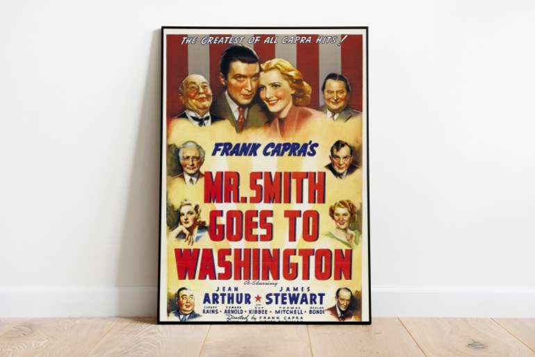 يتناول فيلم “السيد سميث يذهب إلى واشنطن” (Mr. Smith Goes to Washington) قصة شاب مثالي (جيمس ستيوارت) يصبح عضوا في مجلس الشيوخ ليواجه الفساد السياسي.