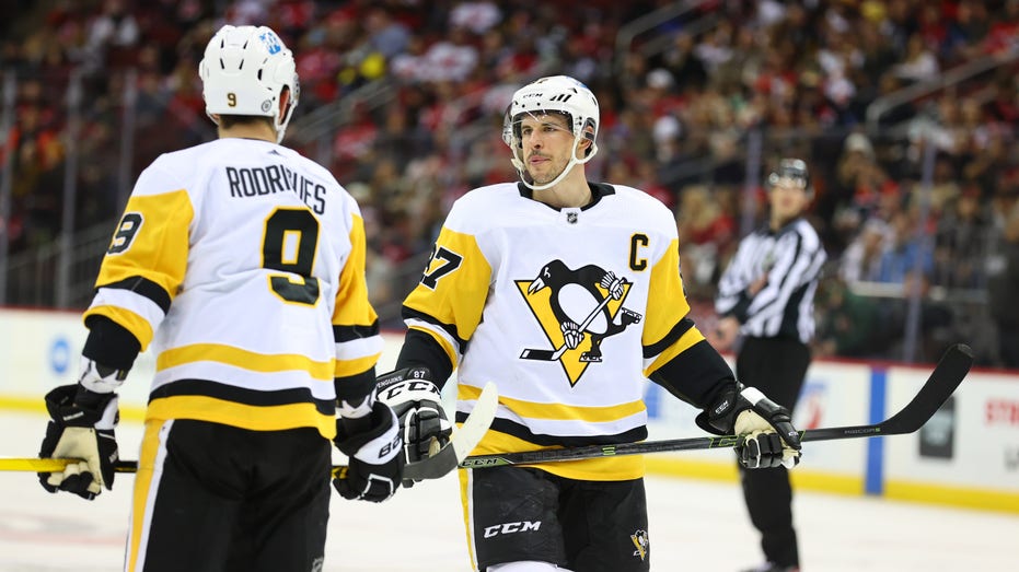 مركز بيتسبرغ بنجوينز سيدني كروسبي خلال الفترة الثالثة من مباراة دوري الهوكي الوطني بين نيو جيرسي ديفلز وبيتسبرغ بطاريق في 19 ديسمبر 2021، في مركز برودنشيال في نيوارك، نيو جيرسي. (تصوير ريتش جرايسل / أيكون سبورتسواير عبر Getty Images / Getty Images)