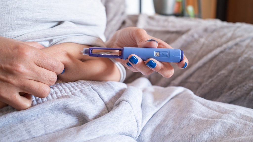 امرأة تحقن حقنة GLP-1 في بطنها في هذه الصورة غير المؤرخة التي تم التقاطها في مكان غير معلوم. (إستوك / إستوك)