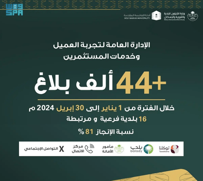 أمانة العاصمة المقدسة تستقبل أكثر من 44 ألف بلاغ إلكتروني خلال العام 2024