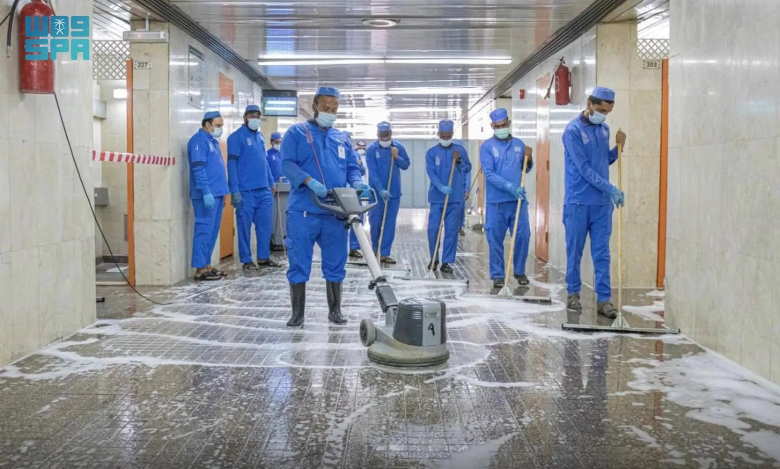 ويُستهلك أكثر من 80000 لتر من المطهرات الصديقة للبيئة لغسيل المسجد الحرام وساحاته ومرافقه على مدار الساعة، وتشغيل 500 معدة وآلة للمشاركة في أعمال الغسيل على مدار اليوم، وتعطير المسجد الحرام وساحاته ومرافقه بـ 2000 لتر يوميًا بأجود أنواع المعطرات التي جلبت خصيصاً للمسجد الحرام, إضافة إلى تشغيل 110 فواحات معطرة جدارية داخل التوسعة والمسعى بأدواره، وتوزيع أكثر من 2000 حاوية نفايات صغيرة وكبيرة داخل وخارج المسجد الحرام لرفع مستوى النظافة.