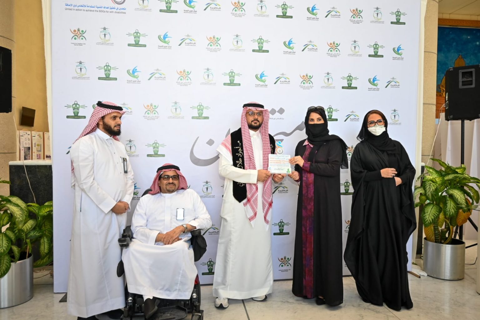 وبدأ الاحتفال بجولة لرئيسة الجامعة المكلفة الأستاذة الدكتورة هناء بنت عبدالله النعيم في المعرض المصاحب والذي شمل على أركان شاركت فيه 24 جهات من داخل وخارج الجامعة واستعرضت من خلال مشاركتها جهودها في رعاية وتعليم الطلبة من ذوي الإعاقة بعد ذلك كرمت رئيسة الجامعة المكلفة الجهات المشاركة.