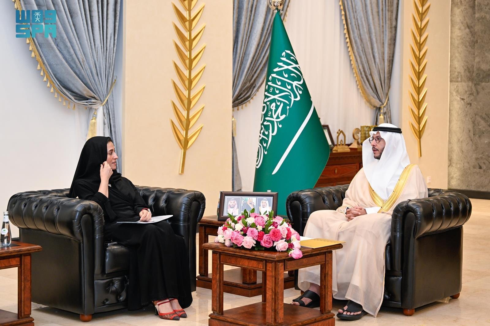 التقى صاحب السمو الملكي الأمير سعود بن نهار بن سعود بن عبدالعزيز محافظ الطائف في مقر المحافظة اليوم, صاحبة السمو الملكي الأميرة هيفاء بنت عبدالمحسن بن عبدالعزيز مديرة التطوير والشراكات بالجمعية العربية السعودية للثقافة والفنون.