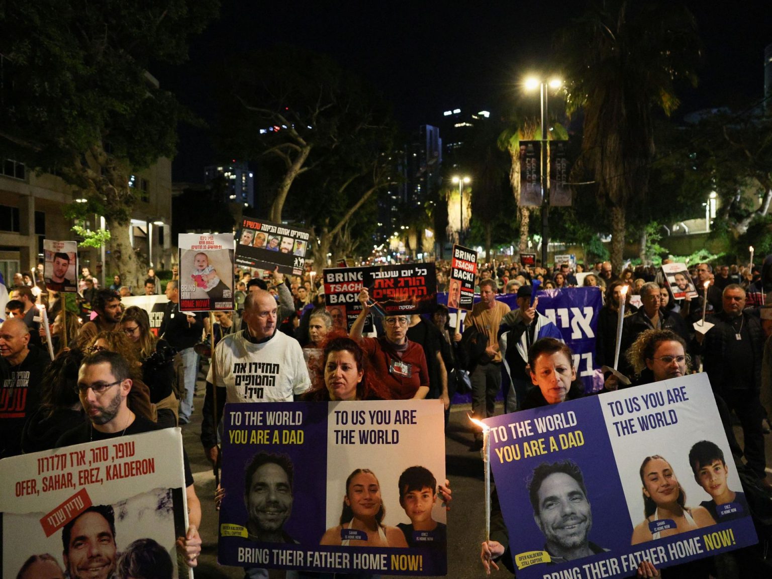 وطالب المحتجون المجلس المصغر لإدارة شؤون الحرب بالتحرك على الفور ووضع منحى جديد لصفقة تبادل أسرى واستعادة المحتجزين.