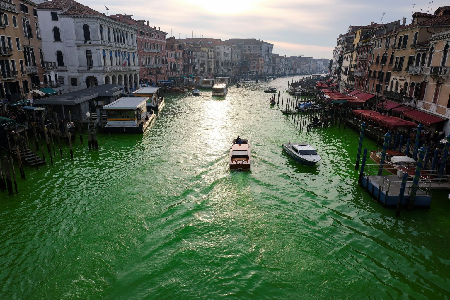 استخدم دعاة حماية البيئة الإيطاليون صبغة لتحويل مياه القناة الكبرى في مدينة البندقية إلى اللون الأخضر، السبت، احتجاجا على ما قالوا إنه عدم إحراز تقدم خلال مؤتمر الأمم المتحدة المعني بتغير المناخ (كوب28) المنعقد في دبي.