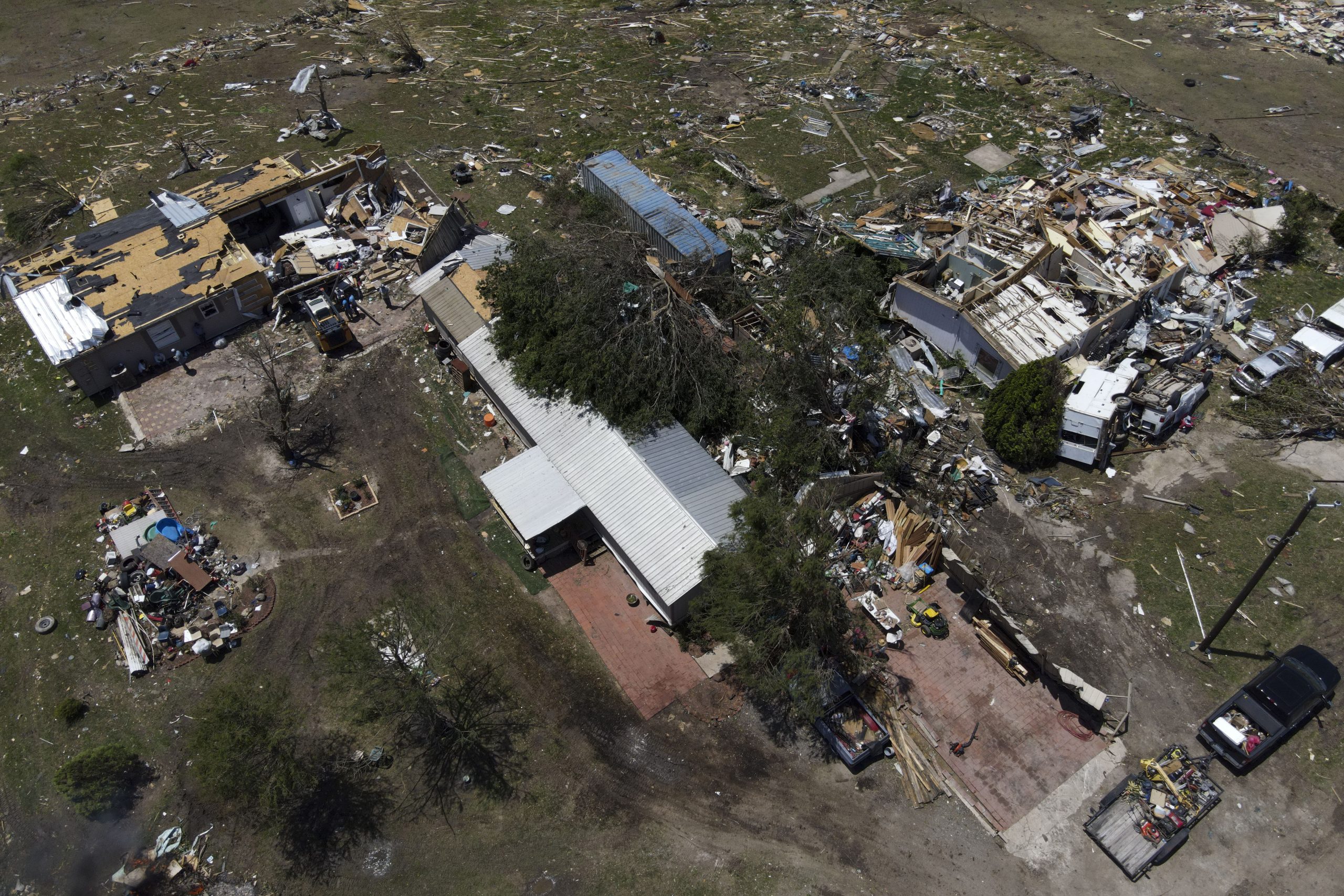 ودمرت العواصف منازل ومحطة شاحنات لجأ إليها سائقون خلال أحدث التقلبات الجوية الدموية التي تضرب وسط الولايات المتحدة.