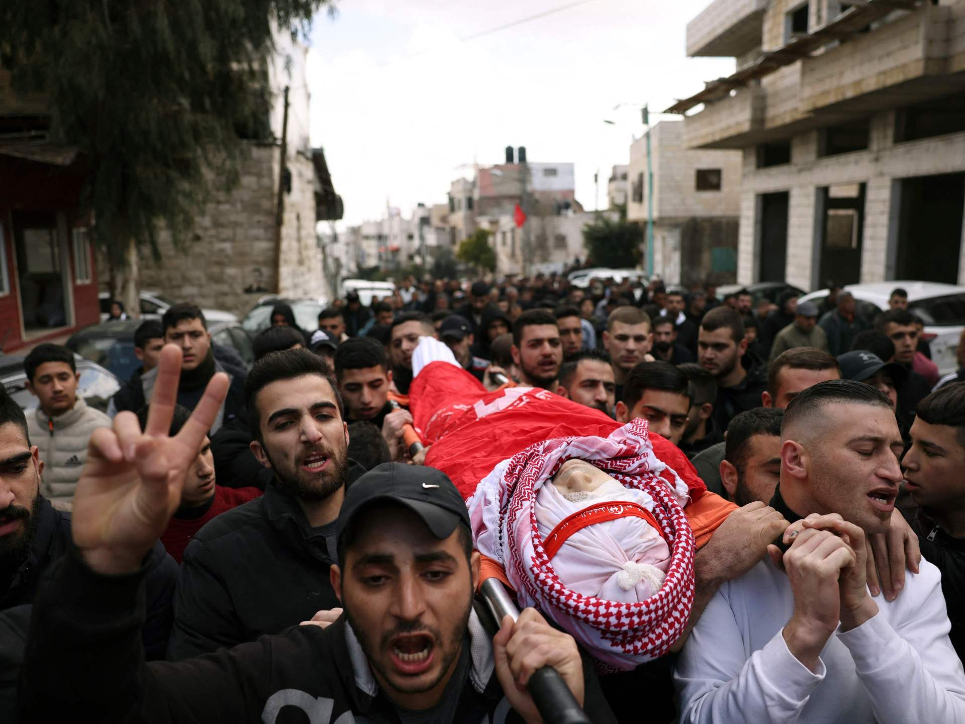 وشمال الخليل، شيع أهالي بلدة “بيت أمر” جثمان الشاب نيهل بريغيث الذي استشهد متأثرا بإصابته برصاص الاحتلال خلال اقتحامه البلدة أمس الأربعاء. وقالت وزارة الصحة الفلسطينية إن 13 فلسطينيا أصيبوا في اقتحام البلدة.