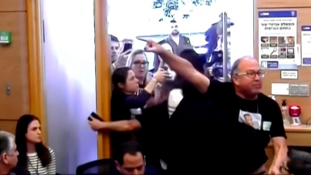 ونقلت القناة 13 مشهد اقتحام بعض ذوي الأسرى اجتماع رئيس الحكومة بنيامين نتنياهو مع لجنة المالية في الكنيست، حيث صرخ جلعاد كورنجولد والد أحد الأسرى مستنكرا “لن تجلسوا هنا بينما أطفالنا يموتون هناك، إذا اعتقدتم أن شخصا ما يمكنه إخراجنا”.