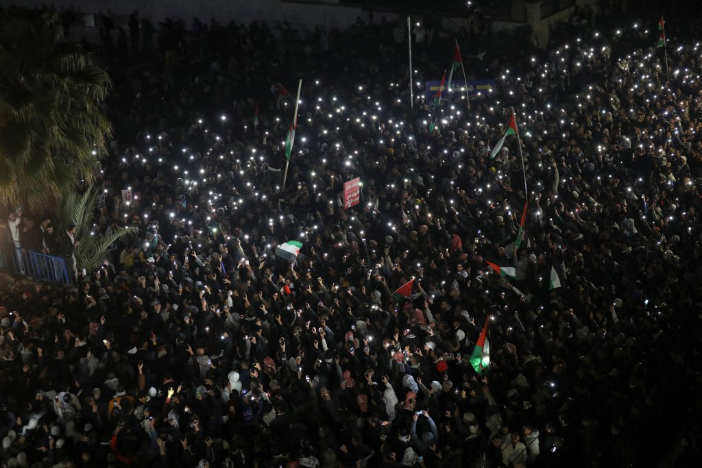 واحتدمت المشاعر بين الأردنيين، وكثيرون منهم من أصل فلسطيني، بسبب ما يدور في غزة حيث أدت حملة القصف الإسرائيلية المتواصلة على حماس إلى مقتل عشرات الآلاف من المدنيين، وفقا لمسؤولين في غزة، وسويت أجزاء كثيرة من القطاع المكتظ بالأرض.