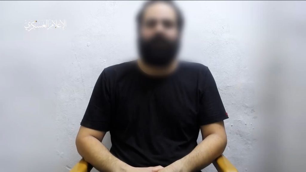نشرت كتائب عز الدين القسام الجناح العسكري لحركة المقاومة الإسلامية (حماس) اليوم الخميس، رسالة مصورة للأسير الإسرائيلي “يردن بيباس” الذي قتلت غارات الاحتلال زوجته وطفليه بقطاع غزة، في حين قال الجيش الإسرائيلي إن “ادعاءات حماس بشأن مقتل عائلة الأسير غير مؤكدة حتى الآن”.