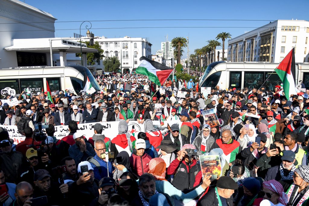 نظم آلاف المتظاهرين، الأحد، إحدى أكبر المسيرات المؤيدة للفلسطينيين في الرباط منذ اندلاع الحرب في قطاع غزة، مطالبين بإنهاء علاقات المغرب مع إسرائيل.