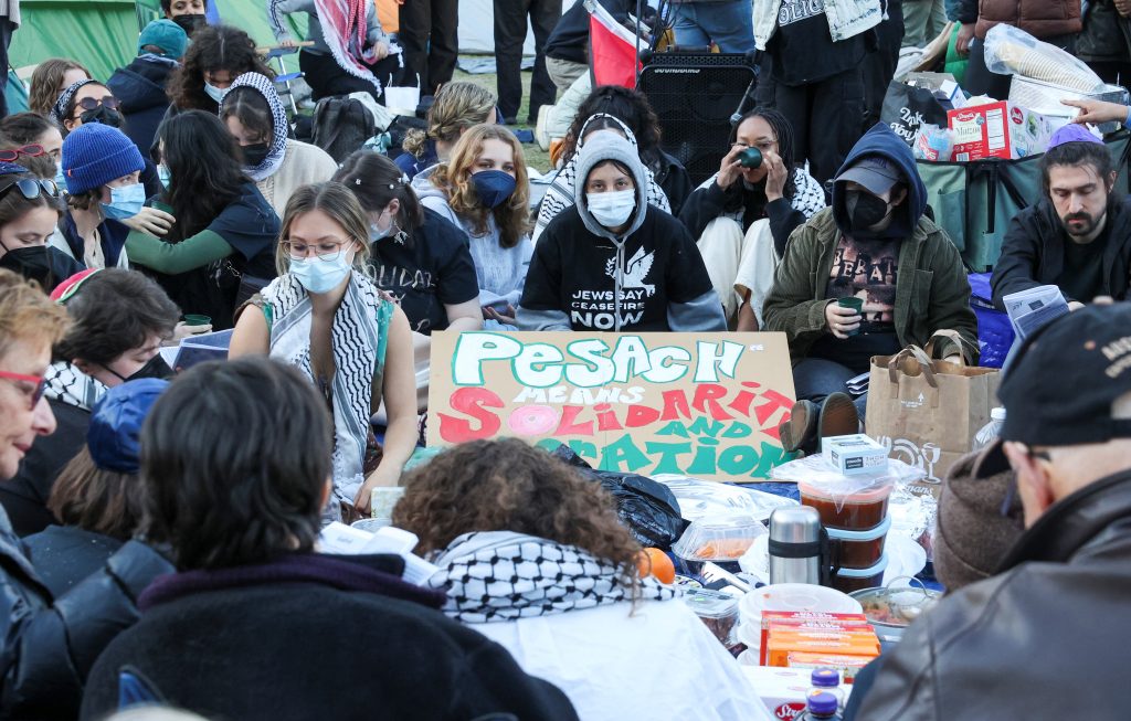 وأقامت مجموعة كبيرة من المتظاهرين “مخيم تضامن مع غزة” في المؤسسة المرموقة في نيويورك، بينما تحدّث بعض الطلاب اليهود عن الترهيب ومعاداة السامية في ظل احتجاجات تواصلت لأيام.