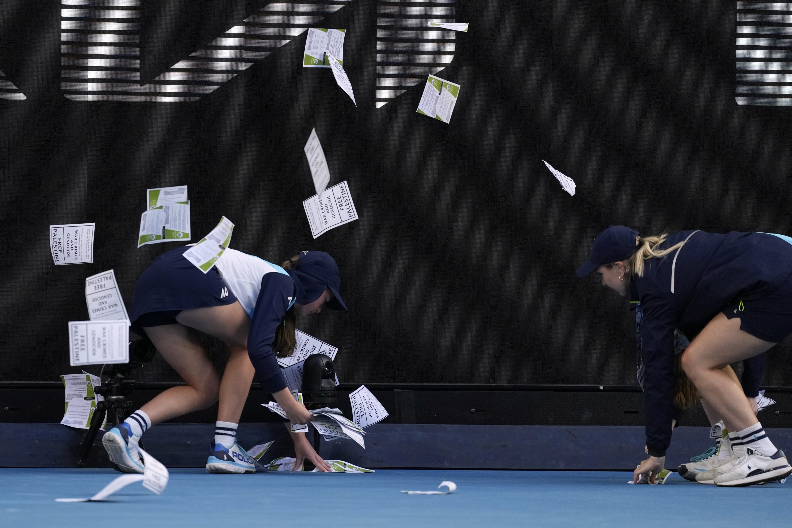 في واقعة لا تتكرر كثيرا بملاعب التنس، ألقى أحد الحاضرين منشورات مناهضة لحرب غزة على ملعب بطولة أستراليا المفتوحة للتنس “ملبورن”، مما عطل لفترة قصيرة مباراة بين الألماني ألكسندر زفيريف والبريطاني كاميرون نوري، الاثنين، في دور الـ16 للبطولة.
