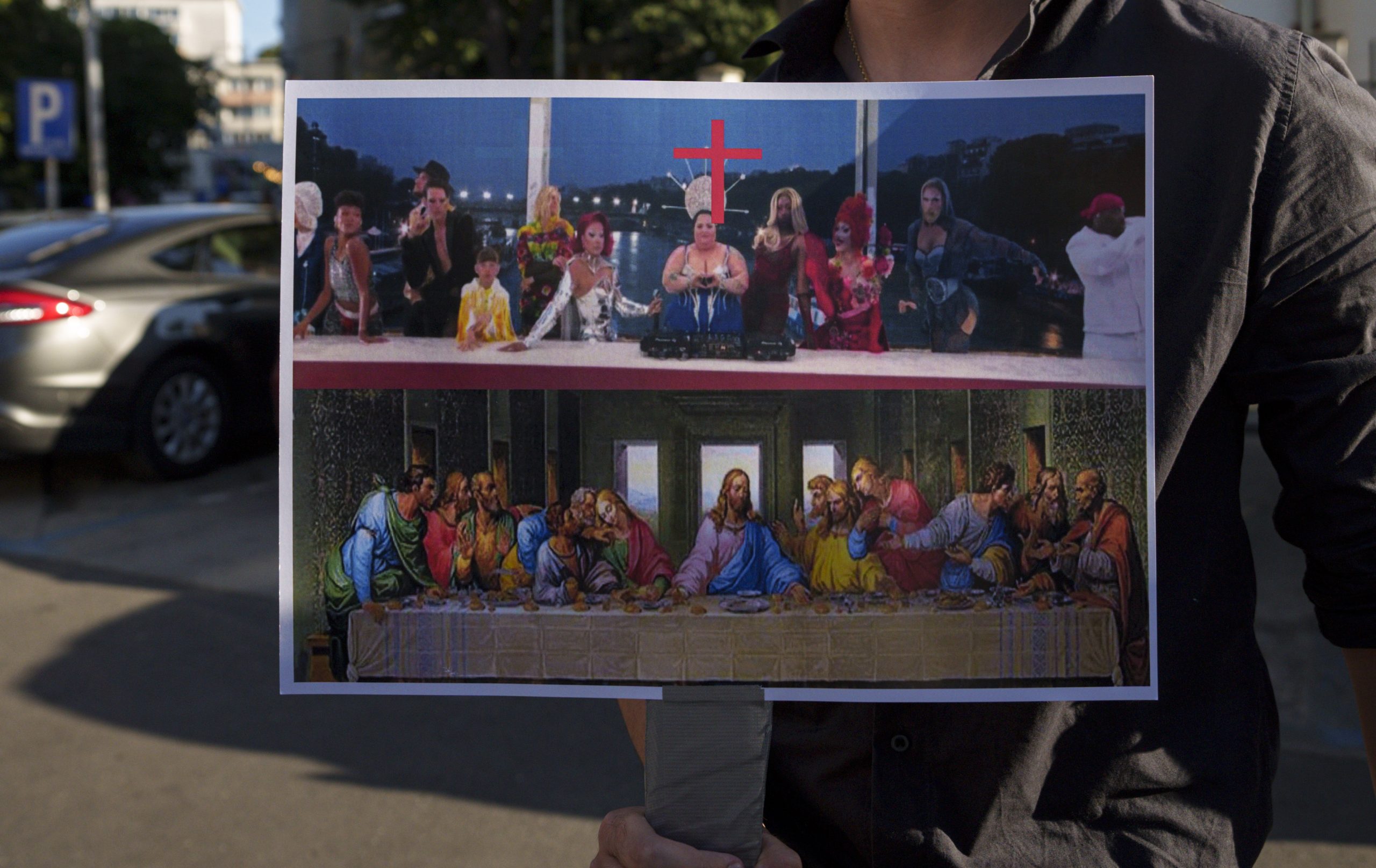 وكانت هذه الفنانة، الناشطة النسوية والمثلية، قدمت عرضا مثيرا للجدل في الحفل حمل عنوان “الاحتفال”، انطلق مع مجموعة أشخاص من بينهم مَن يُعرفون بـ”دراغ كوين” (نيكي دول، بالوما…) تجمّعوا حول طاولة، في مشهد قال البعض إنّه ينطوي على استهزاء بلوحة العشاء الأخير التي تجمع يسوع برسله.