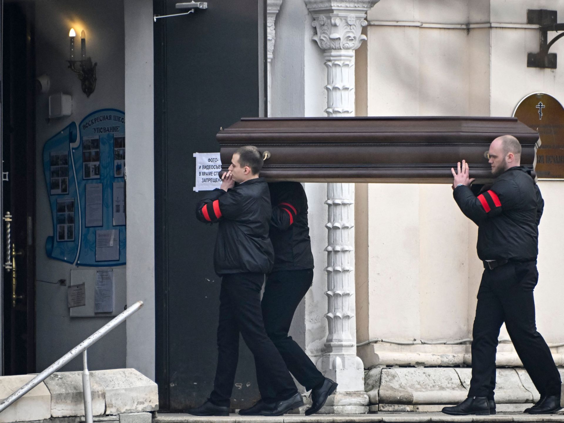 ونشر إيفان جدانوف -أحد أفراد فريق نافالني- مقطع فيديو على تليغرام يظهر فيه عدّة رجال يُخرجون النعش من عربة الموتى. وقال “سيستغرق الإعداد للجنازة بعض الوقت. وستدخل العائلة الكنيسة”.