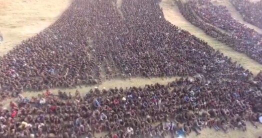 يظهر المقطع لقطات لآلاف الأشخاص جالسين على الأرض يتقدمهم حاملو لافتات. وجاء في التعليق المرافق “الجيش المصري يأسر 37 ألف جندي إثيوبي في الصومال”.