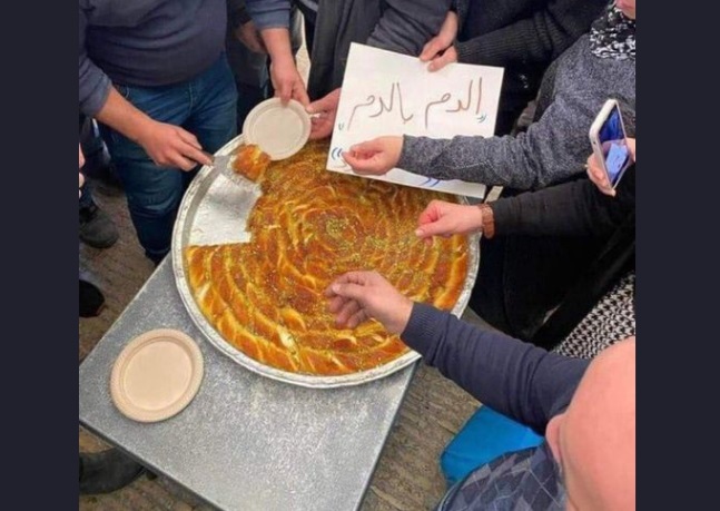 ويبدو في الصورة رجل يوزّع حلوى على عددِ من الأشخاص الذين تجمّعوا من حوله. وعلّق مشاركو الصورة بالقول “الأردنيون يوزعون الحلوى في الشوارع “.
