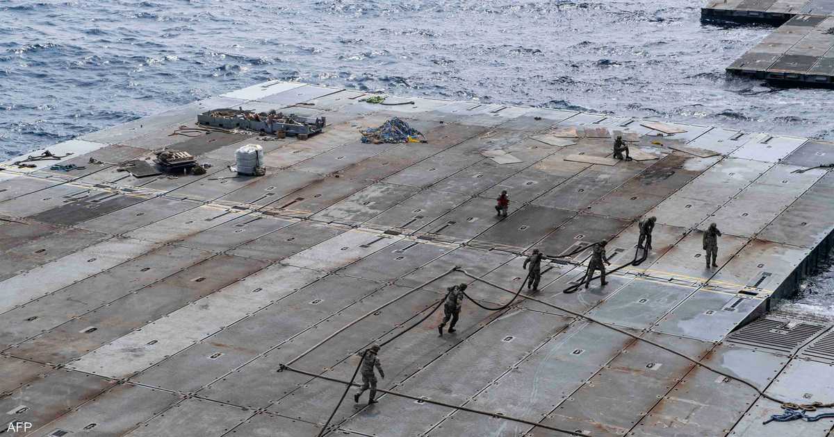 وتأتي المساعدات التي يتم تفريغها على الرصيف عبر ممر بحري من قبرص، حيث يتم تفتيشها أولا من قبل إسرائيل. وتقدر تكلفة تشغيل الرصيف بنحو 320 مليون دولار بمشاركة ألف جندي أميركي.