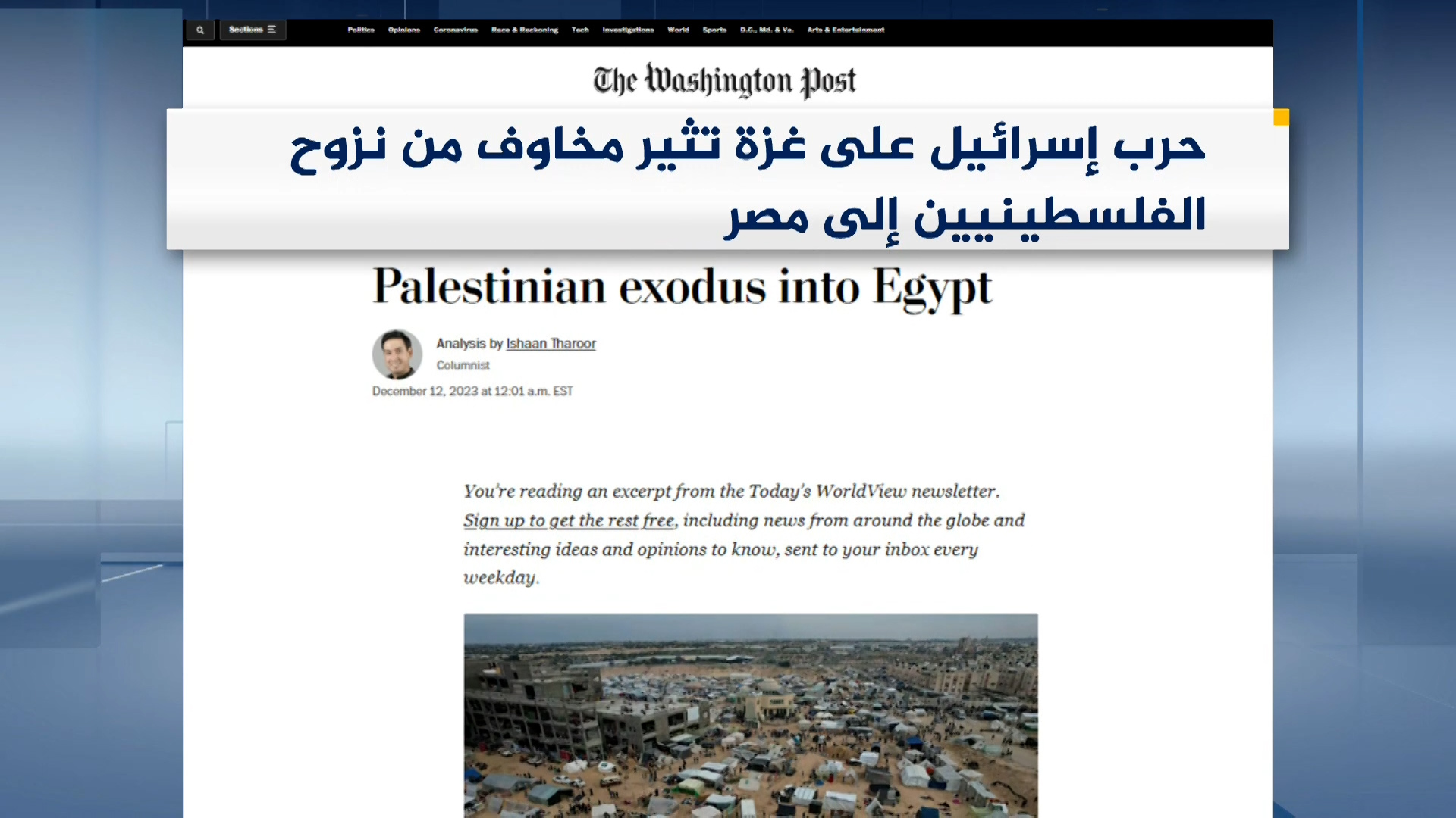 أما صحيفة “واشنطن بوست” فتطرقت إلى المخاوف التي تثيرها حرب إسرائيل على غزة من نزوح الفلسطينيين إلى مصر. وجاء في مقال للكاتب إيشان ثارور “إنه بالنسبة للكثيرين في العالم العربي، سبب الخوف يكمن في المقام الأول في عدم السماح للفلسطينيين الذين فروا من غزة بالعودة، ونظرا لتاريخ الصراع الإسرائيلي الفلسطيني، فإن مخاوفهم مشروعة”.