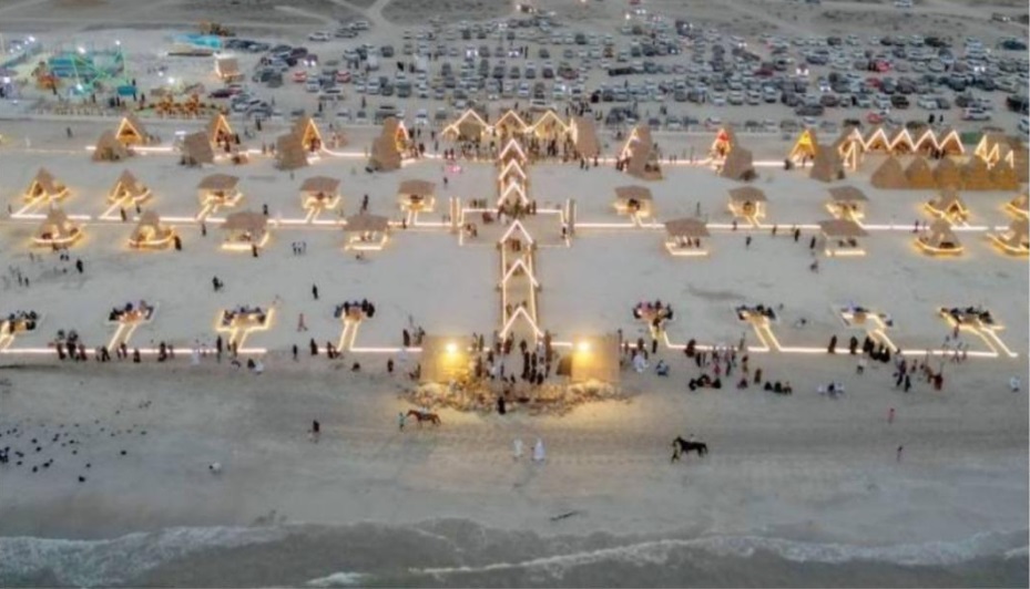 يبدو في الصورة شاطئ وضعت عليه خيمٌ وأضيئت الممرات بينها. وجاء في التعليق المرافق أنّ الصورة تظهر شاطئاً في مدينة دمياط الساحليّة في شمال مصر.