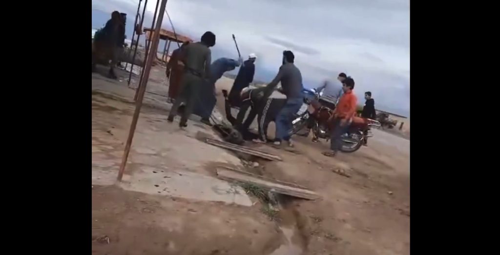 وفي حين لم تدفعهم تلك الصرخات لوقف الضرب الوحشي كان أحدهم يدعو الآخر بالقول: “اضرب حيل (بقوة) اضرب اضرب”.