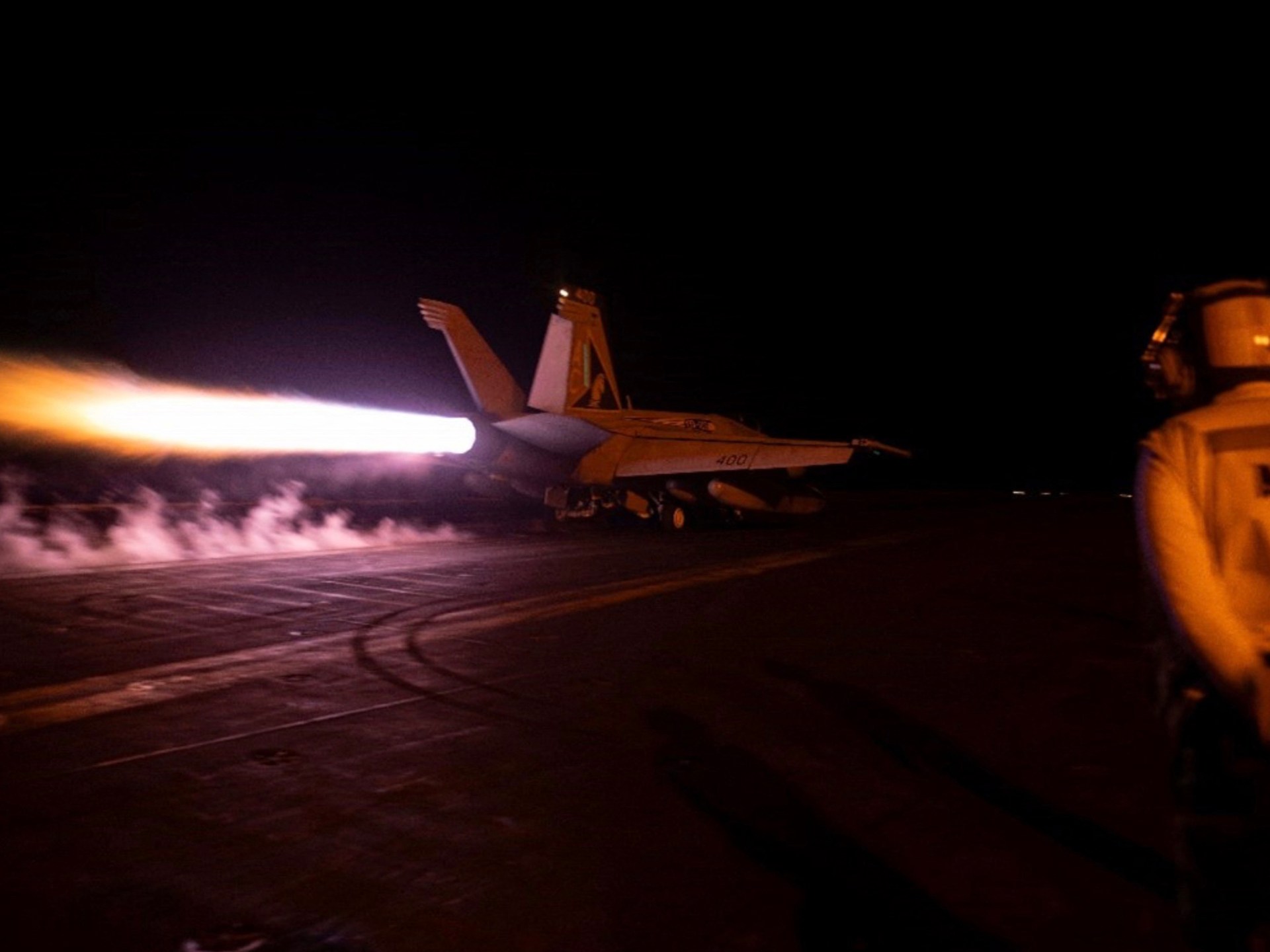 بدورها، نشرت القيادة الوسطى الأميركية صورا لما قالت إنه انطلاق طائرات وإطلاق صواريخ على أهداف لجماعة أنصار الله الحوثيين باليمن.