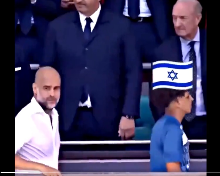 انتشر على الإنترنت مقطع فيديو يعرض بيب غوارديولا مدرب فريق مانشستر سيتي وهو يمر بجانب شخص ويتجاهل مصاحفته بزعم أنه مندوب إسرائيل.
