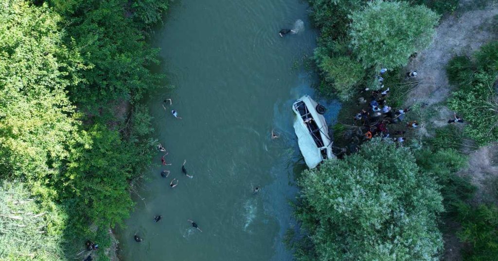 ولم يتضح على الفور سبب خروج الحافلة عن مسارها، بينما أظهرت صور من مكان الحادث صخور شديدة الانحدار تطل على مجرى النهر.