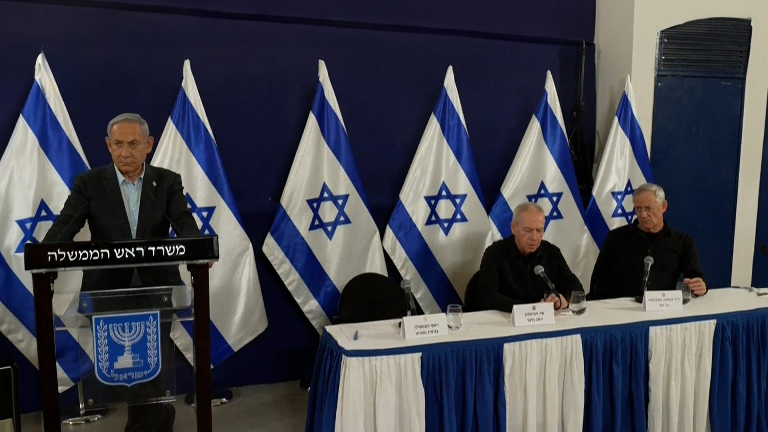 وأكد نتنياهو، خلال مؤتمر صحفي مشترك مع غالانت وعضو حكومة الحرب بيني غانتس، أن الحرب لن تتوقف ما لم تتحقق أهدافها المعلنة، وأنه لن يقبل بوجود أي قوات غير إسرائيلية لضمان إبقاء غزة منزوعة السلاح بعد انتهاء القتال.