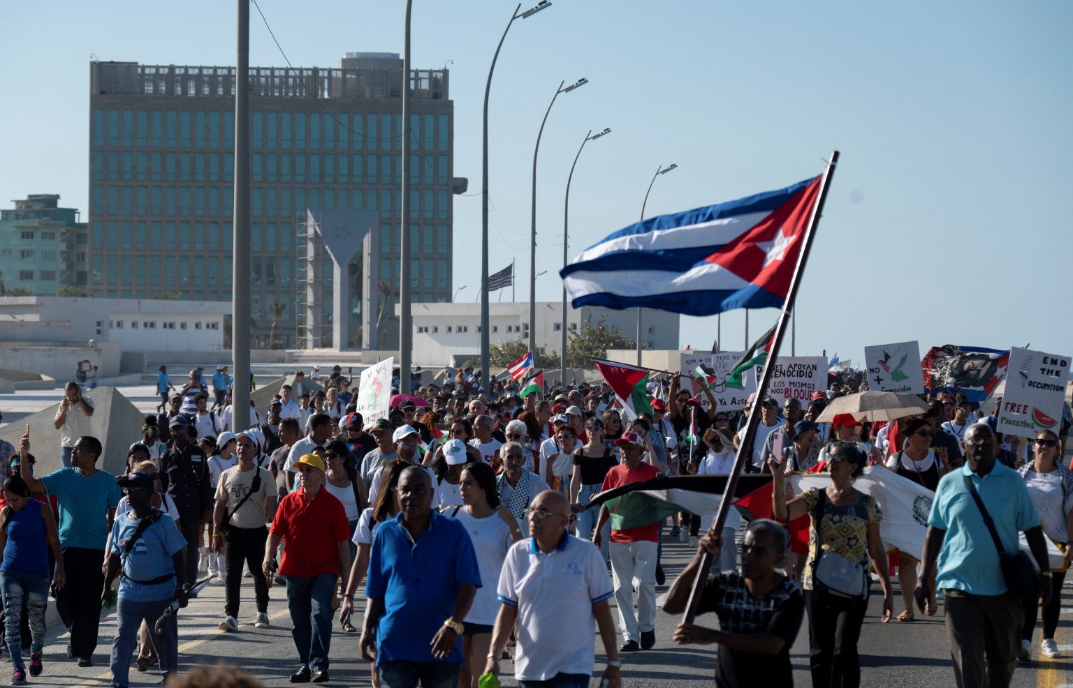 قاد الرئيس الكوبي، ميغيل دياز كانيل، الخميس، تظاهرة ضخمة في هافانا دعما للفلسطينيين وجهت خلالها انتقادات للولايات المتحدة بسبب دعمها إسرائيل.