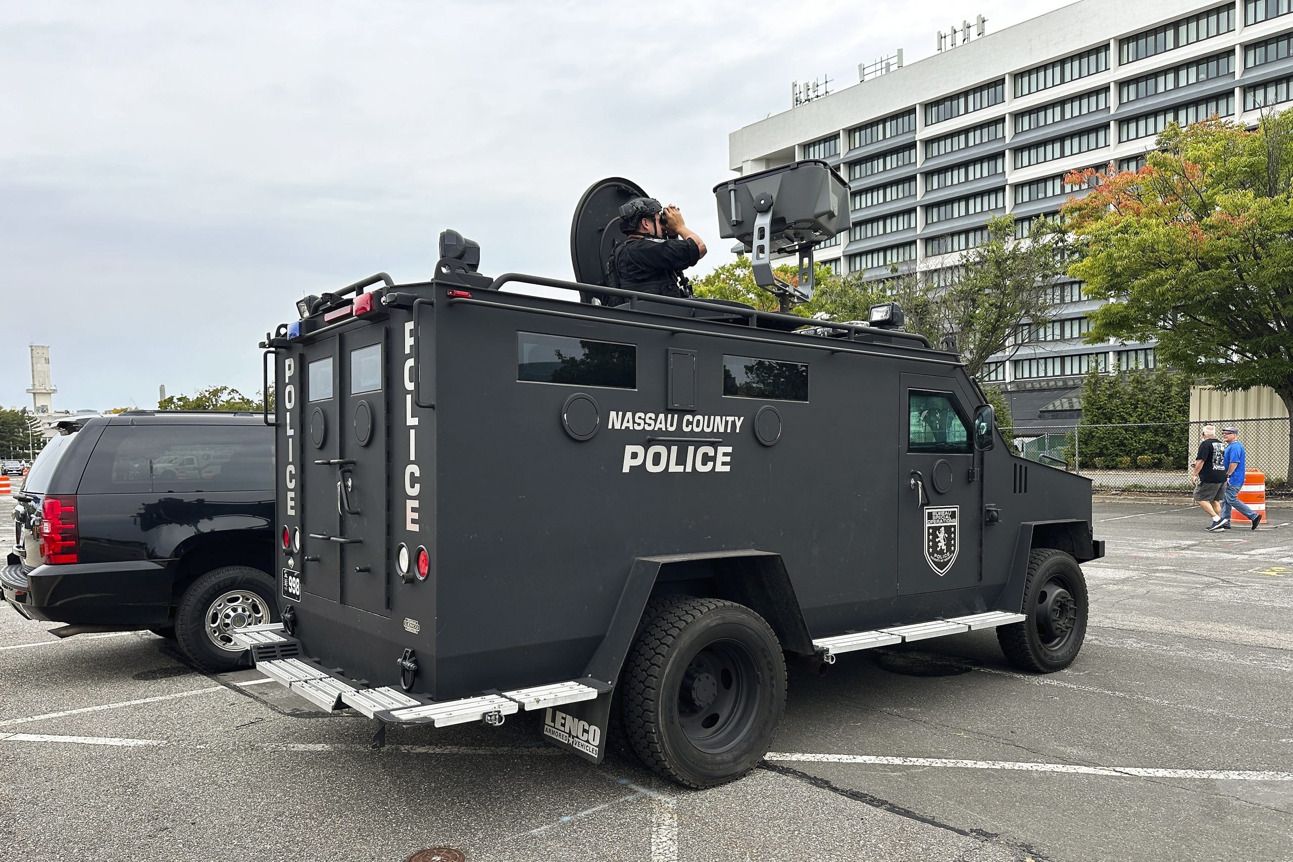 وقال باتريك رايدر، مفوض الشرطة في مقاطعة ناسو، إن الشرطة استجوبت واحتجزت شخصا “ربما كان يدرب كلبا على اكتشاف القنابل” بالقرب من موقع التجمع، “وأبلغ كذبا بالعثور على متفجرات”.