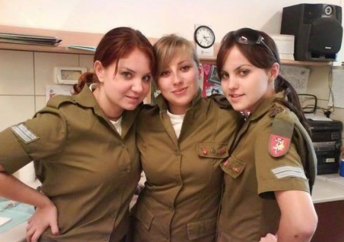 وتظهر في الصورة ثلاث شابات بلباس عسكريّ.