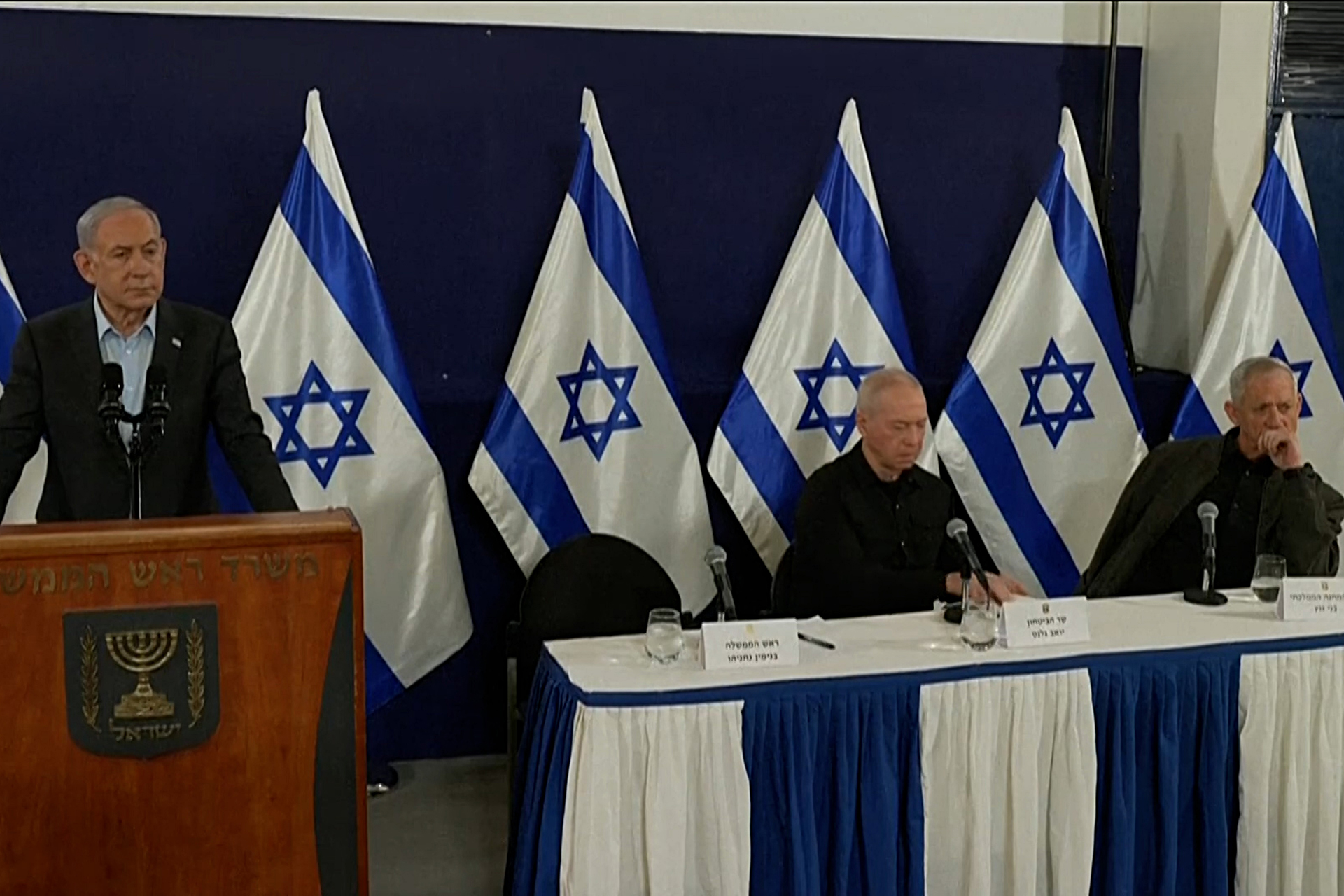 وأشار نتنياهو في مؤتمر صحفي مشترك مع وزير الدفاع يوآف غالانت ووزير مجلس الحرب بيني غانتس إلى أنهم مصممون على “مواصلة القتال حتى القضاء على حماس وإعادة مخطوفينا”.