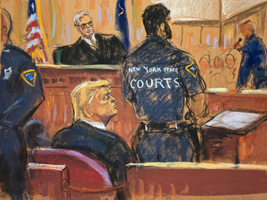 لم يُسمح بدخول الكاميرات إلى قاعة المحكمة في مانهاتن عندما تمت قراءة الحكم في محاكمة دونالد ترامب مقابل المال غير المشروع، لكن فنانين رسموا صوروا المشهد.