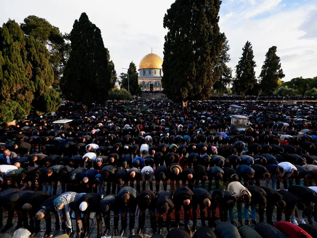 أقام أكثر من 60 ألف فلسطيني -اليوم الأربعاء- صلاة عيد الفطر بالمسجد الأقصى في مدينة القدس الشرقية المحتلة، دون أي أجواء احتفالية تعبيرا عن حزنهم على ضحايا الحرب الإسرائيلية المستمرة على قطاع غزة منذ 6 أشهر.