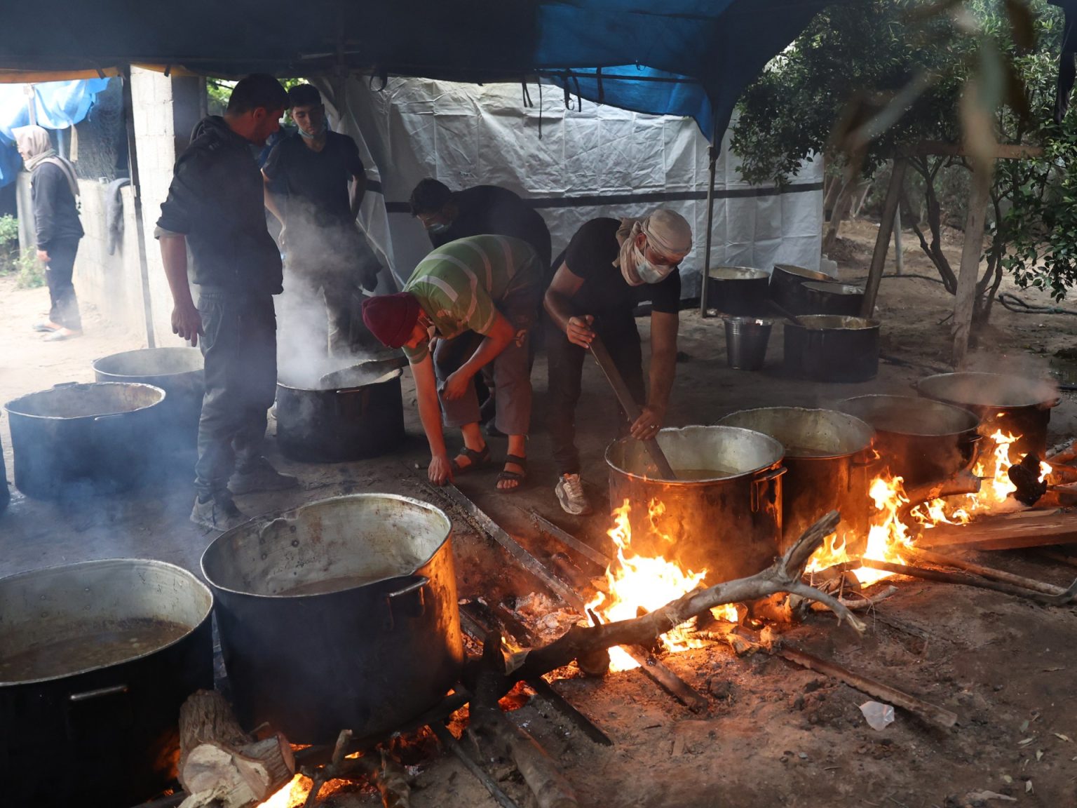 غزة- يتنقل عاطف ريّان بين نحو 20 قِدرا كبيرا مصفوفة بعناية فوق حفرة تشتعل فيها النيران، للتأكد من نضوج اللحم، تمهيدا لإضافة الأرز. وبعد أن أمر بإضافة الملح بكميات محددة لبعض القدور، أهاب بالعاملين معه الإسراع في تجهيز الطعام، نظرا لاقتراب موعد تسليم الوجبات.