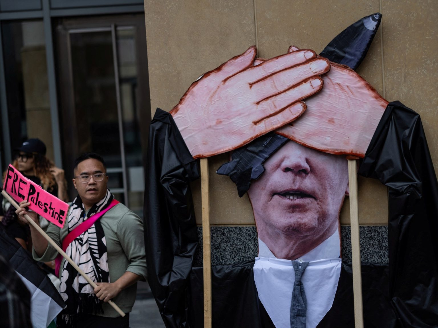 ولم تكن زيارة بايدن خالية تماما من المواجهة، وبينما كان يعقد اجتماعا سياسيا في أحد المطاعم التي يملكها أميركيون أفارقة، هتفت مجموعة من المتظاهرين خارج المطعم بعبارات “عار عليك” و”جو بايدن داعم الإبادة الجماعية” و”كم عدد الأطفال الذين قتلتهم اليوم؟”.
