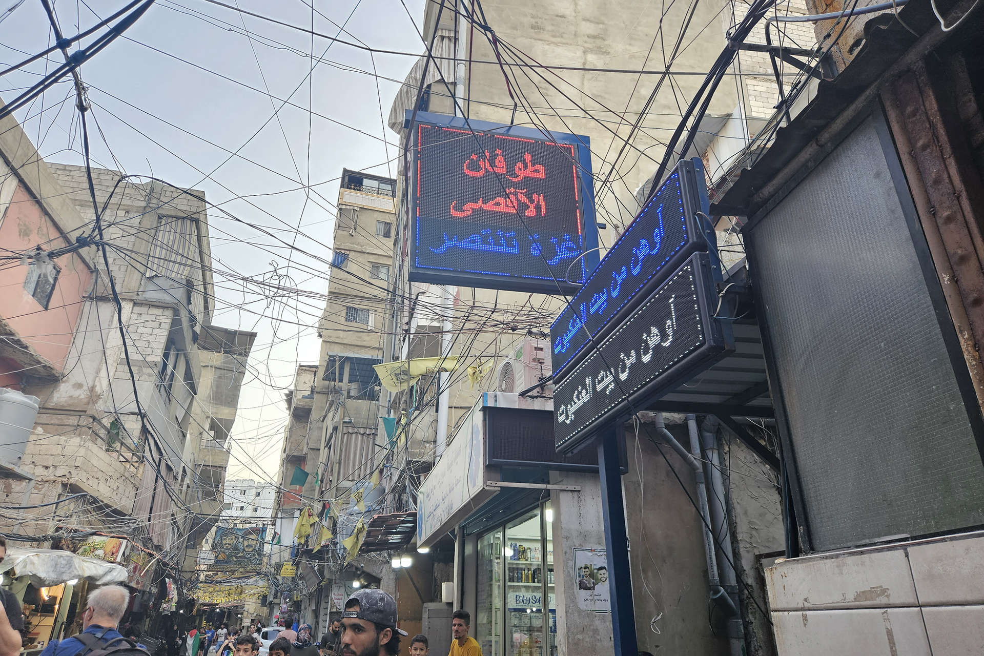 وفي مخيم البرج (35 ألف نسمة) حيث يغيب القانون اللبناني ويعود الحكم والأمن للفصائل الفلسطينية، هناك إجماع على تأييد هجوم السابع من أكتوبر/تشرين الأول الماضي على إسرائيل واعتباره عملا من أعمال المقاومة، ولذلك تنتشر في كل مكان أعلام حماس وصور أبو عبيدة، المتحدث باسم جناحها العسكري كتائب القسام، حسبما تقول مراسلة الصحيفة صوفي وولدجن.