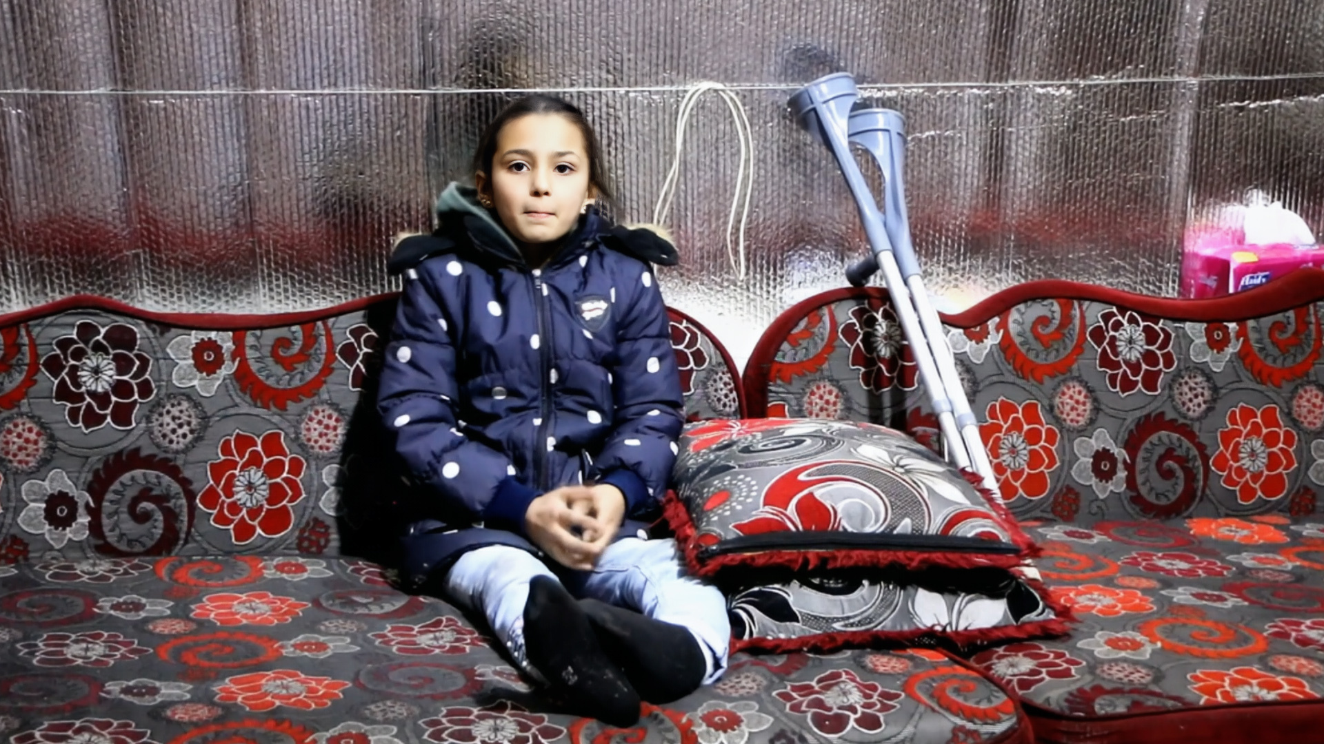 وأصيبت الطفلة السورية مريم الأحمد (12 عام) بـ”متلازمة الهرس”. وقالت: “الأرجل الصناعية (العكازات) أصبحت ترافقني في كل أوقاتي، واجهت في البداية صعوبة كبيرة بالمشي، ولكن الآن وبعد مرور عام تأقلمت عليها، ولكن أريد أن أتخلص منها وأعود لألعب وأركض مع زملائي وأخوتي”.