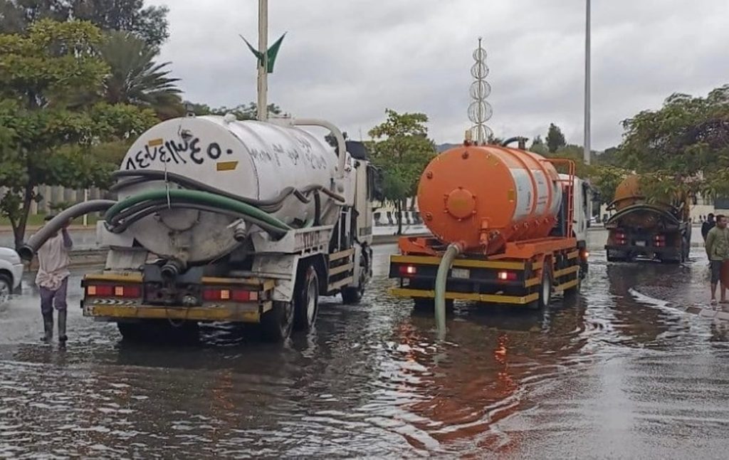 وباشرت فرق الأمانة الميدانية مهامها في معالجة الآثار المترتبة على الحالة المطرية.