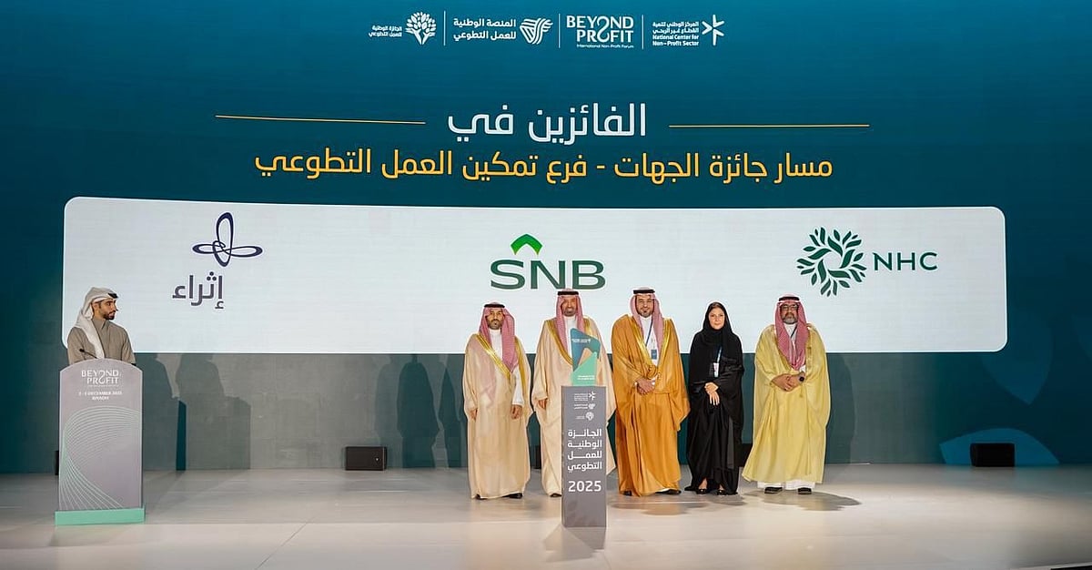 حصد مركز الملك عبد العزيز الثقافي العالمي (إثراء) مبادرة أرامكو السعودية، الجائزة الوطنية للعمل التطوعي في مسار التمكين، من المركز الوطني لتنمية القطاع غير الربحي، وذلك صباح يوم الخميس الموافق 4 ديسمبر 2025 خلال الحفل الذي أقيم في العاصمة الرياض؛ تقديرًا لدوره في بناء منظومة تطوعية متكاملة، تجسّد رسالته في تمكين الشباب، وتعزيز حضورهم في المشهد الثقافي المجتمعي.