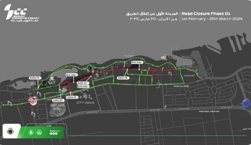 أعلن المرور إغلاق طريق الكورنيش الفرعي (داخل منطقة الفورمولا 1) المتجه لـ حلبة كورنيش جدة.