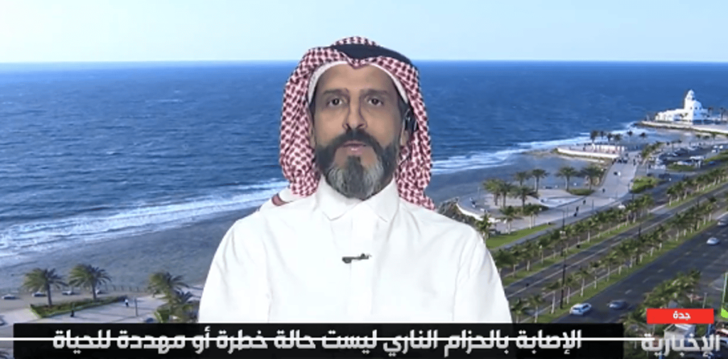 وأضاف بابطين، في تصريحات عبر قناة “الإخبارية”، أن “الحزام الناري” يظهر على شكل طفح جلدي.