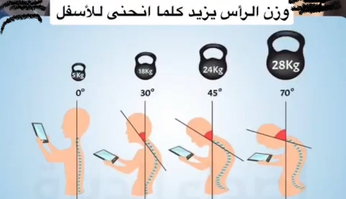 وأضاف «الخضيري»، عبر منصة «إكس»، أنه «عند الإمساك بالجوال يجب رفع الرأس للأعلى ورفع الجوال ليوازي مستوى العينين».