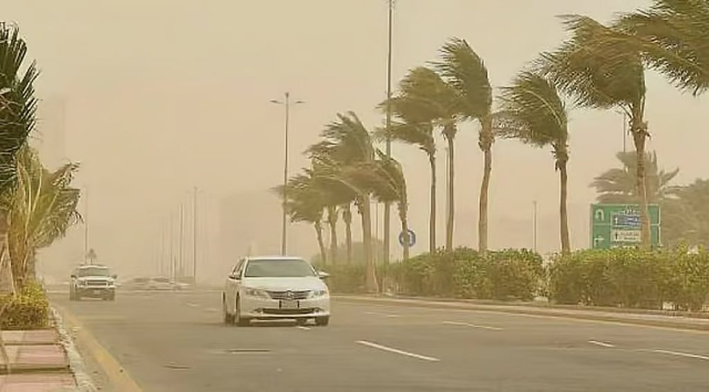 وتوقع المركز في تقريره، أن تشمل التأثيرات المصاحبة رياحًا نشطة وشبه انعدام في مدى الرؤية الأفقية (1-3) كم.