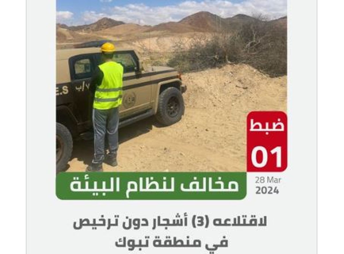 ضبطت القوات الخاصة للأمن البيئي مقيمًا مخالفًا لنظام البيئة من الجنسية الباكستانية لاقتلاعه 3 أشجار، دون ترخيص في منطقة تبوك.