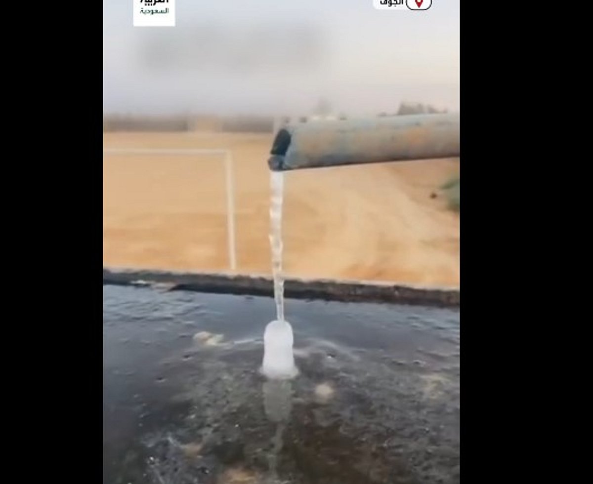 تداول مستخدمو مواقع التواصل الاجتماعي، مقطع فيديو، يوثق تجمد المياه في عدد من المدن والمحافظات في المملكة العربية السعودية صباح اليوم الخميس على إثر موجة البرد التي تشهدها المملكة.