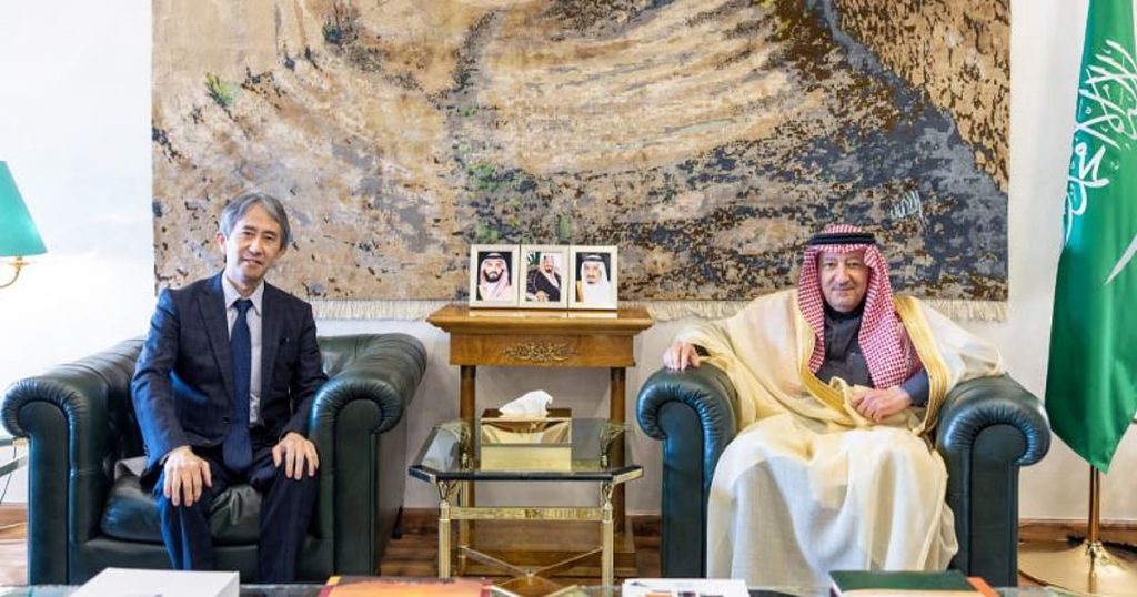 حضر الاستقبال، سفير اليابان لدى المملكة ياسوناري مورينو.
